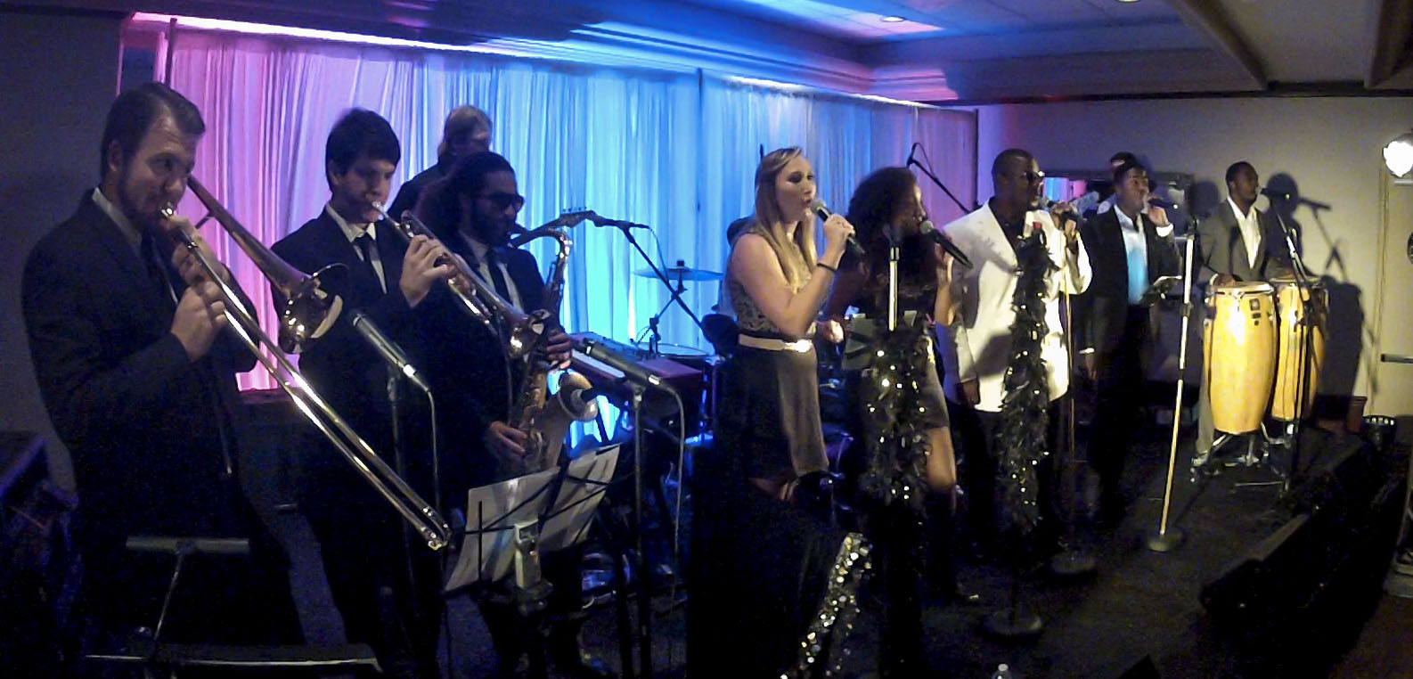 If you want the killer song selection, vibe, and fun of a top level DJ, but the unmatched energy of a killer band, then High Altitude is the group for you! Our line up is available as a 6, 8 or 12-piece band depending on your event's entertainment budget. Our 12-piece line-up features 4 singers, 3 horns and 1 percussionist, guitarist, pianist, bassist, and drummer.