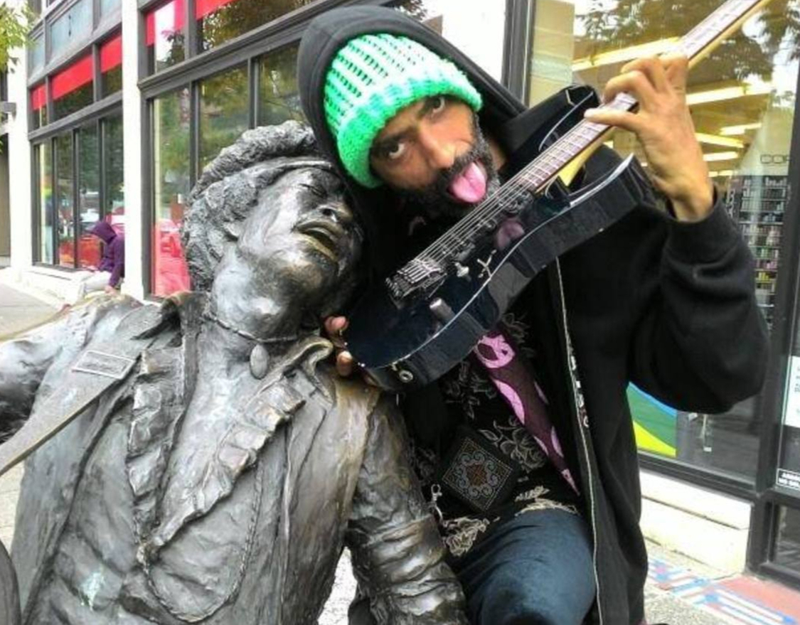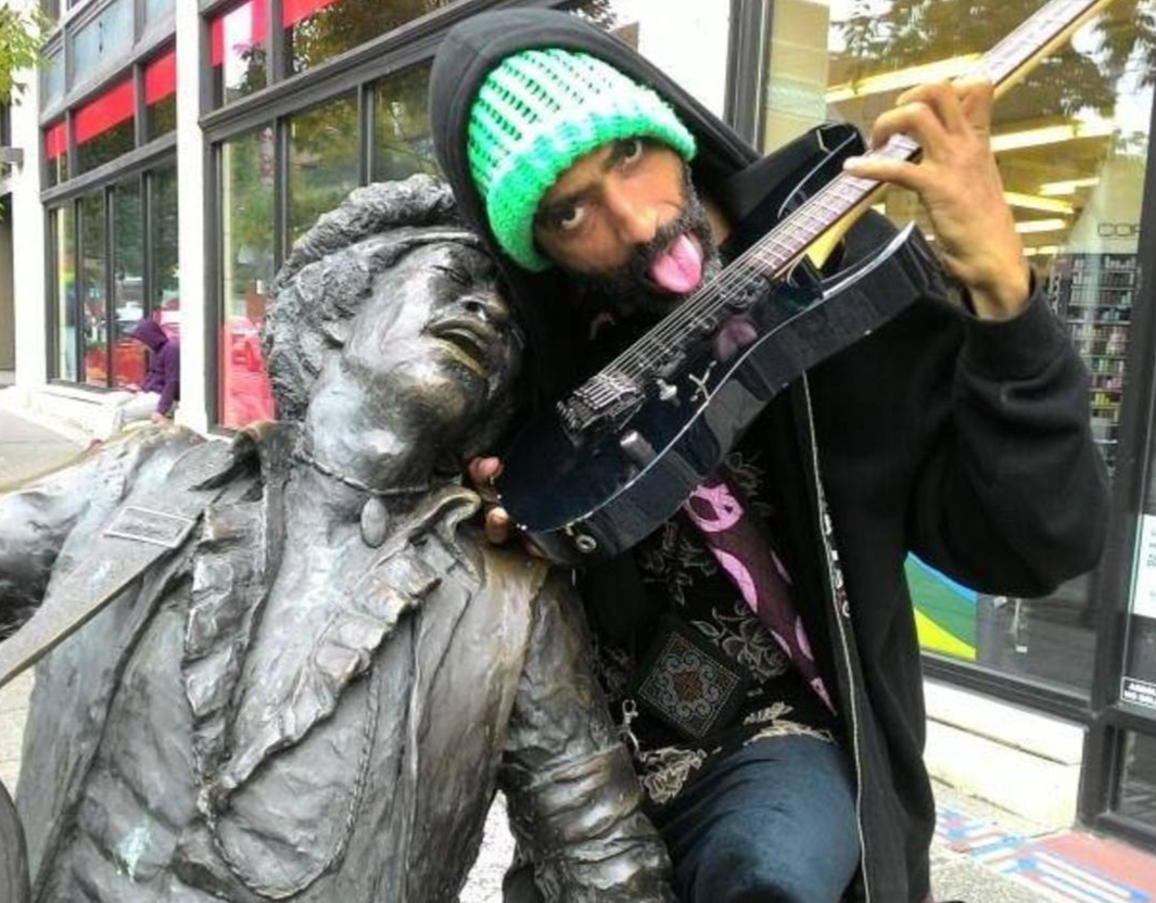 Homeless Hendrix is a Pike Street Busker and former Broadway Crusty whose sound, style, apparel and voice have Musical Revolution written all over them. His command of Hendrix, Zeppelin etc. is huge and he has Peers-at-best on the Guitar.