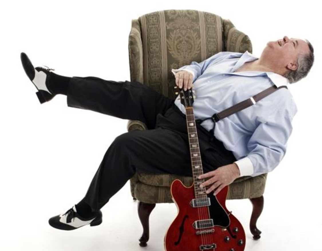 His music is generally genre non-specific and offers what he calls 'Acoustic Schlock Therapy'. He's steeped in the Blues, Jazz, Swing, Honky-Tonk and R&B.
