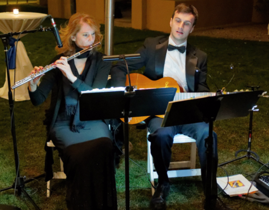 SoSco’s musicians have these qualities along with extensive experience performing their flute and guitar music at public and private events in the Phoenix area. We perform for private parties, holiday celebrations, wedding ceremonies (including LGBT weddings and senior weddings), cocktail hours, dinner receptions, rehearsal dinners, memorial services, fundraisers, corporate events, restaurants, wine bars, senior living communities and more.