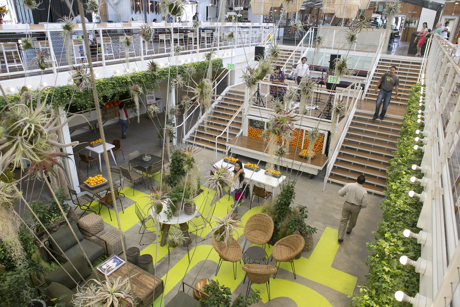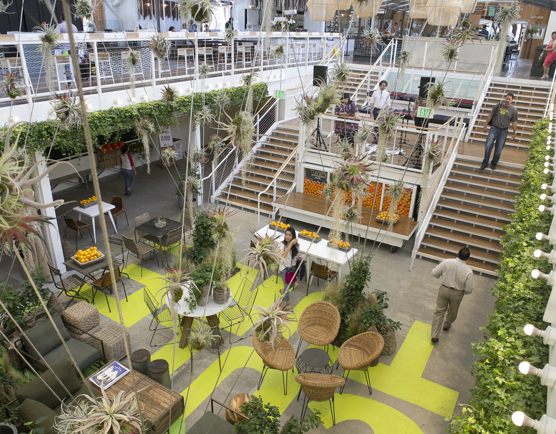 The restored Packing House is a food hall reminiscent of the great public markets of South America and Europe. These markets serve as a resource for the neighborhood (daily food production) and a community gathering space (restaurants and entertainment). The two level Packing House features a large central atrium with communal dining surrounded by cafes and kiosks of varying sizes as well as outdoor picnic gardens and a building-length dining porch looking out to the outdoor marketplace, Farmers’ Park.