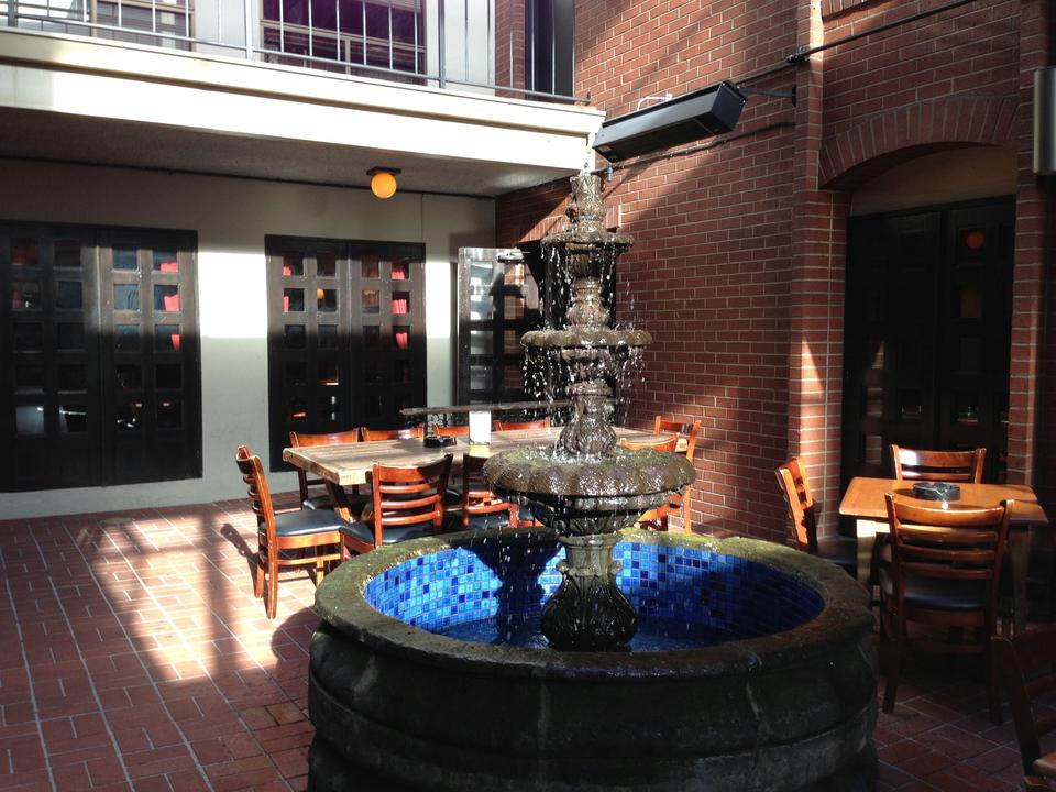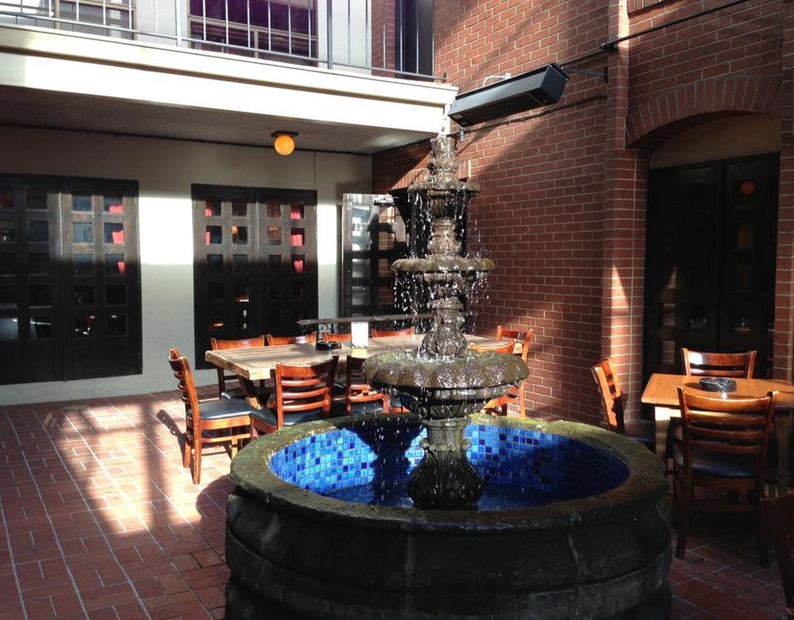 Bar offering upscale bar grub, live music some nights & a heated courtyard for cigar smokers.