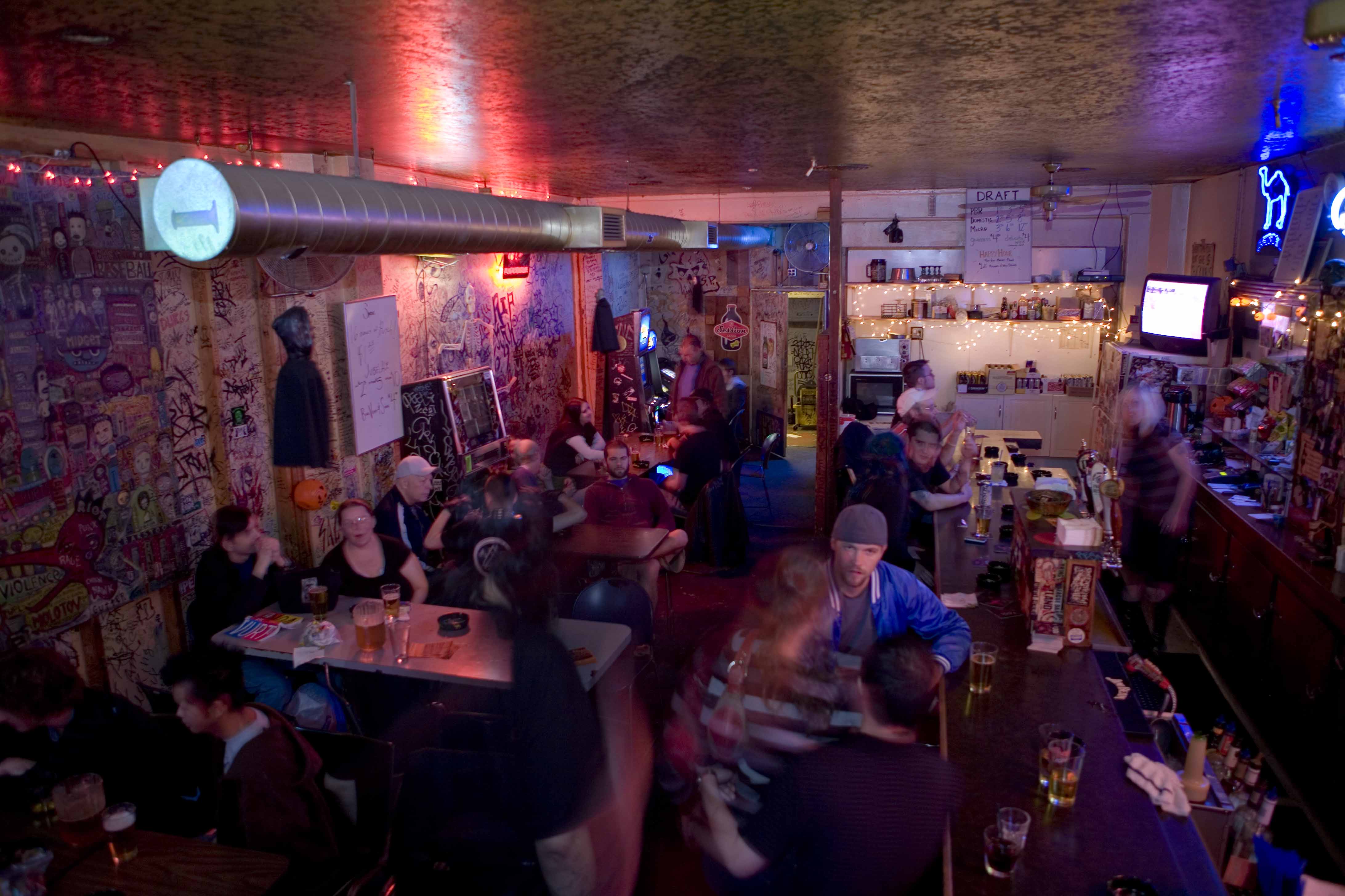 Unpretentious bar with graffitied walls has a punk rock vibe, discount pitchers & a jukebox.